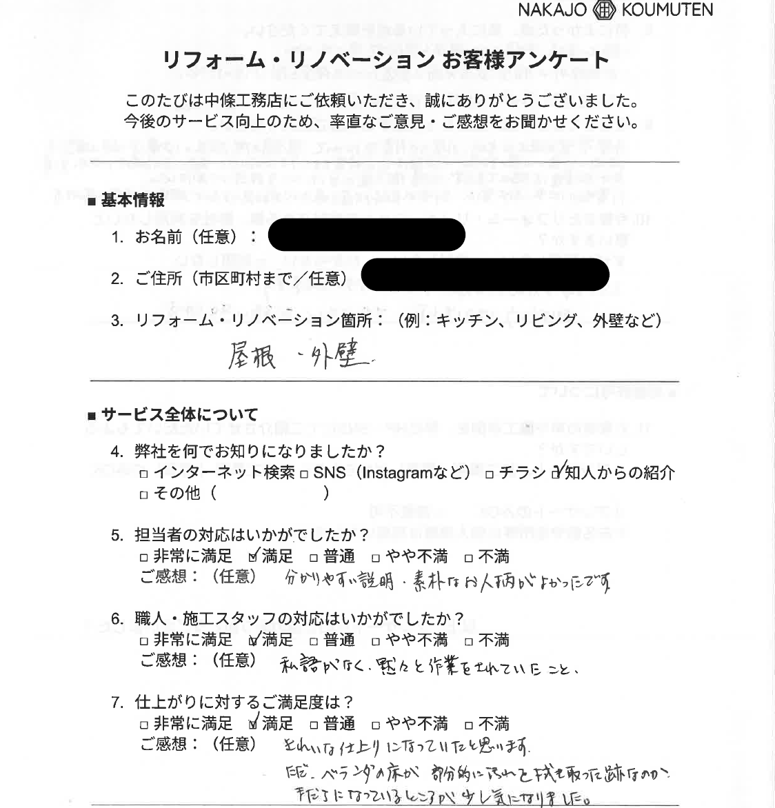 外壁塗装の施工に当たり、外壁への付着物について現調の際、撤去の必要・不必要の確認をしていただくと良いと思いました。