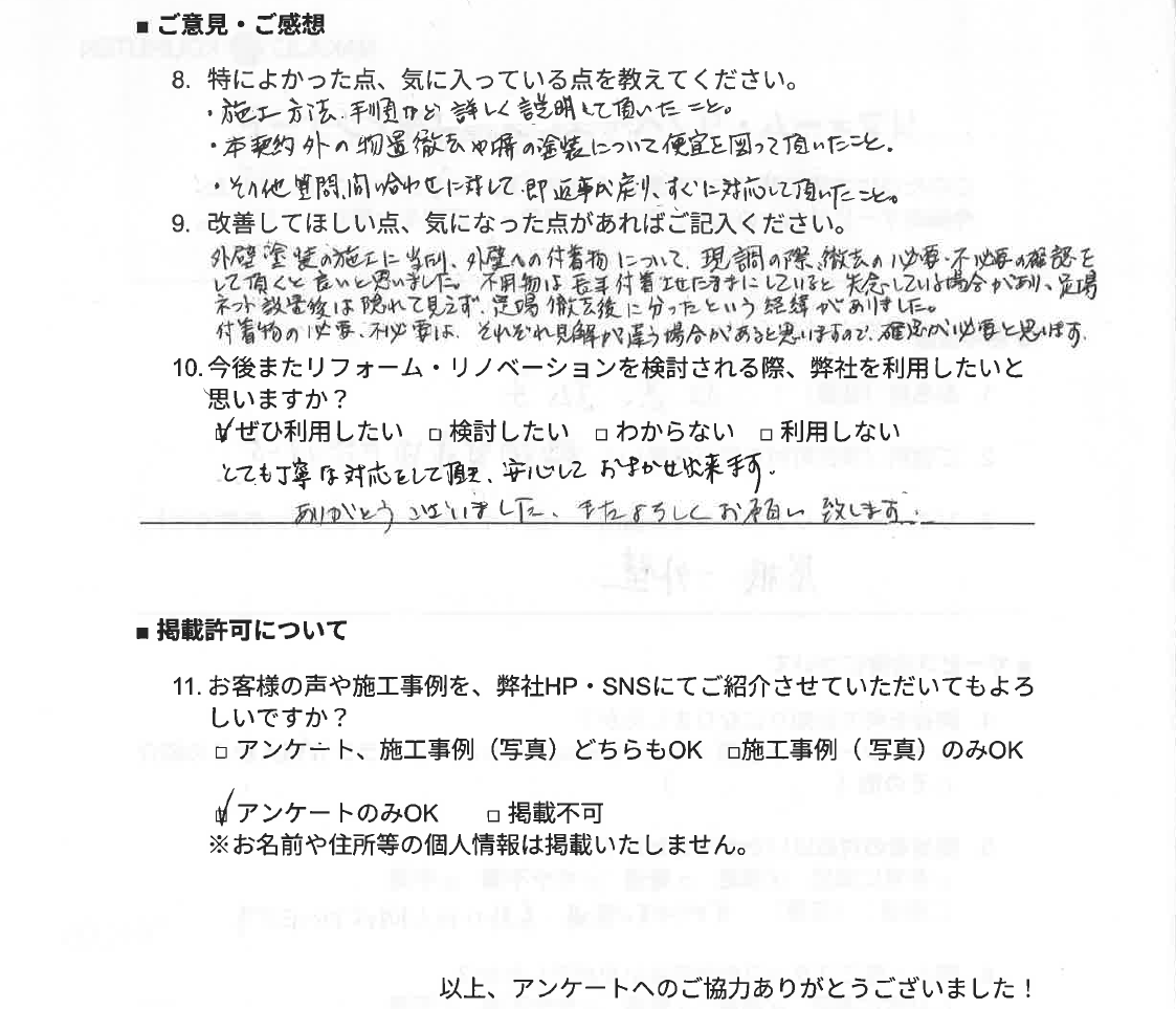 ・本契約外の物置撤去や塀の塗装ついて便宜を図って頂いたこと