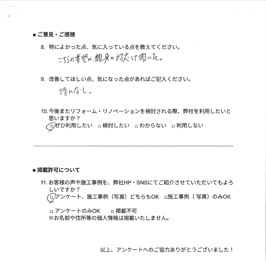 □今後またリフォーム・リノベーションを検討される際、弊社を利用したいと思いますか?