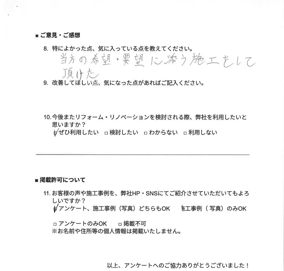□今後またリフォーム・リノベーションを検討される際、弊社を利用したいと思いますか?